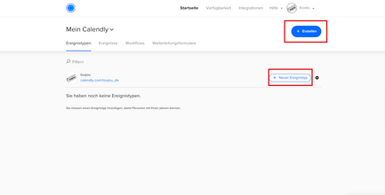 Legen Sie im nächsten Schritt einen Ereignistyp an. Klicken Sie auf + Erstellen und wählen den Ereignistyp aus. Alternativ klicken Sie auf + Neuer Ereignistyp neben dem Zahnrad-Symbol.