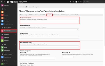 - Klicken Sie unter toujou settings auf toujou Theme und anschließend auf den Reiter Analytics.