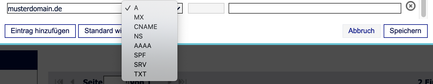 - Erstellen Sie den TXT-Eintrag, indem Sie in den DNS-Einstellungen einen neuen Eintrag hinzufügen und den Typ TXT im Dropdown-Menü wählen. Für das Verifizieren bei Bing erstellen Sie an dieser Stelle einen CNAME-Eintrag.