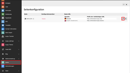 - Klicken Sie in der Seitenverwaltung auf Seiten und anschließend auf Seitenkonfiguration bearbeiten (Stift-Symbol).
