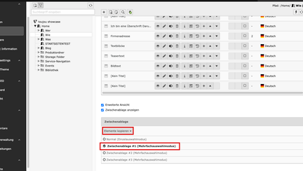 Navigieren Sie auf die Seite, auf der die Elemente eingefügt werden sollen (hier »Wer«). Fügen Sie die Elemente an der gewünschten Stelle ein, indem Sie auf die Option »Einfügen nach« bei dem gewünschten Element klicken.
