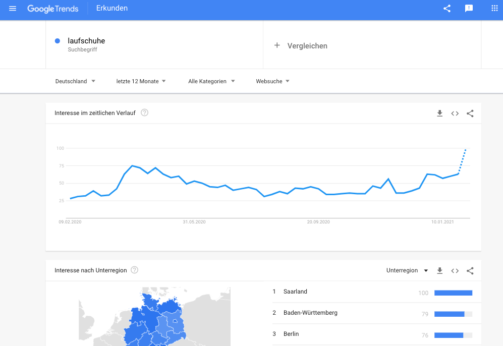 Um keine unendliche Liste mit allen Suchbegriffen erstellen zu müssen, ergibt die Priorisierung der Wörter Sinn – logischerweise auf Basis des Suchvolumens. Wobei hier das höchste Suchvolumen nicht gleichbedeutend mit den höchsten Chancen auf Erfolg ist. Denken Sie also neben verwandten Keywords nicht nur an die sogenannten Short Tail Keywords, beispielsweise »Laufschuhe«. Nutzen Sie auch die Long Tail Keywords für eine individuellere Suchanfrage. Sie sind in der Regel gleichbedeutend mit einer höheren Click-through-rate (CTR), was wiederum Ihren Umsatz steigern kann. Ein Beispiel hierfür: »Beste Laufschuhe für den Winter«.