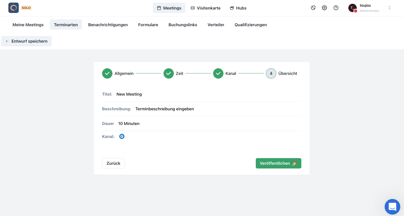 Abschließend veröffentlichen Sie den Termin durch Klick auf den Button »Veröffentlichen«.