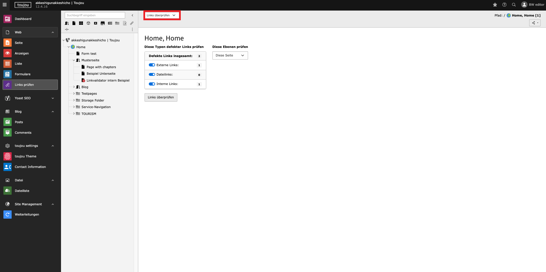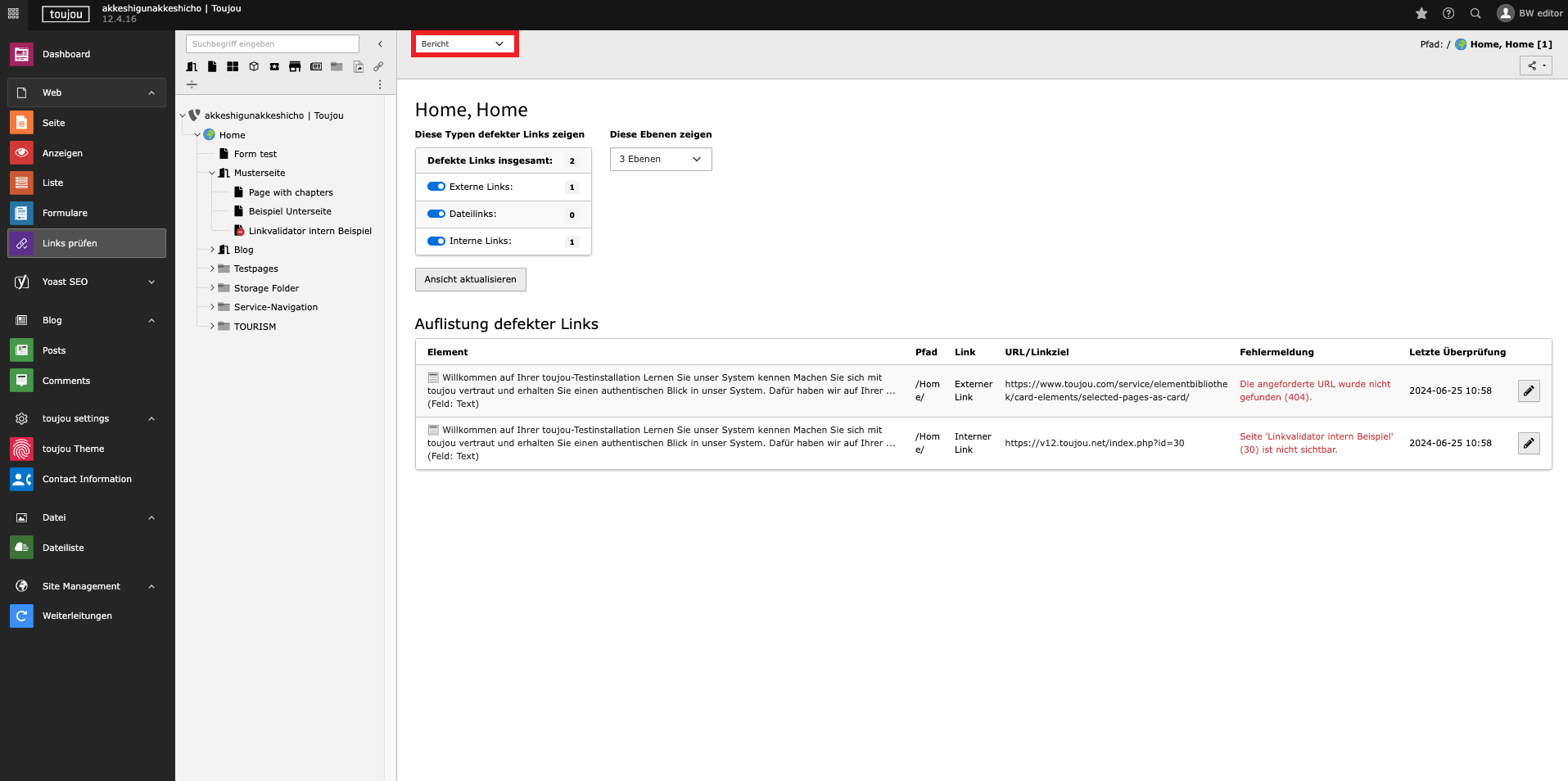 In toujou gibt es ein neues Modul, den Linkvalidator. Dieser erkennt fehlerhafte Links im gesamten System und fasst sie übersichtlich zusammen. Dabei werden interne Links, externe Links sowie Datei-Links berücksichtigt. Website-Betreiberinnen und Redakteure können somit auf einen Blick sehen, wo defekte Links auf der Website versteckt sind – und diese direkt editieren.