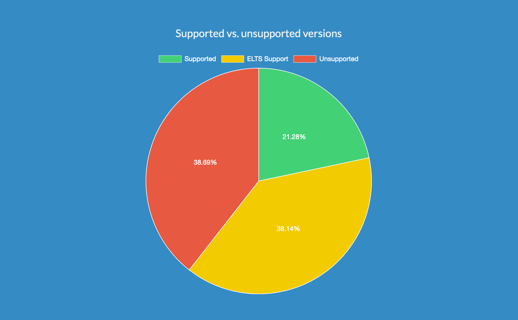 Leider lässt sich das jedoch nicht von TYPO3-Websites im Allgemeinen behaupten, von denen 38,7 % auf nicht-unterstützten TYPO3-Versionen basieren (Quelle).