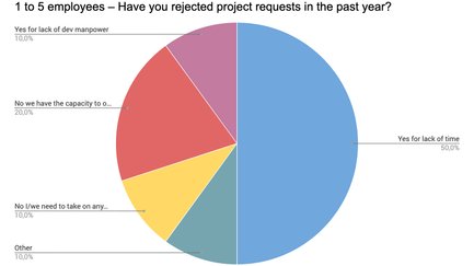 | not enough references; fine as it is; Yes, for the focus or expectations of the clients; low budget; Yes, for incompatibility with our values and systems; projects either not fitting (too small for TYPO3) + developers booked on larger projects; yes, smaller projects and projects with incomplete requirements are rejected |