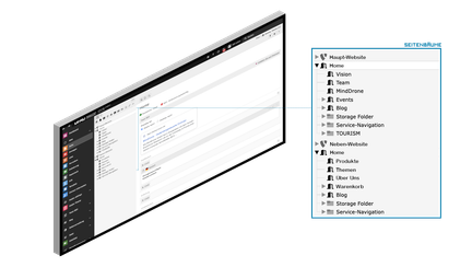 Im Backend besitzt jede neue Website einen eigenen Einstiegspunkt im TYPO3-Seitenbaum. Die einzelnen Websites im Seitenbaum bleiben dabei eigenständig, besitzen also unterschiedliches Design, unterschiedlichen Content und eine eigene Domain oder Subdomain.