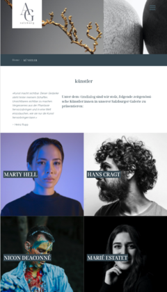Um den Medien mehr Raum einzuräumen, ist die Navigationsleiste hinter dem Burger-Menü versteckt, das beim Scrollen vollständig verschwindet. Beim Erstellen der Website ist daher vorab auch auf eine intuitive Navigation mittels der Elemente zu achten.