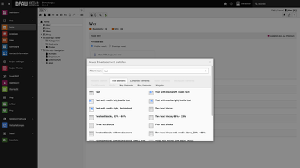 Im sogenannten Wizard lässt sich das gewünschte Element per Filterfunktion noch einfacher finden beziehungsweise die Auswahl der verfügbaren Elemente eingrenzen.