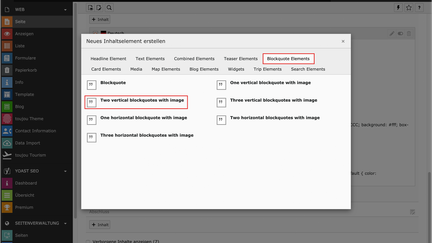 - Im Reiter Blockquote Elements wählen Sie Two vertical blockquotes with image.