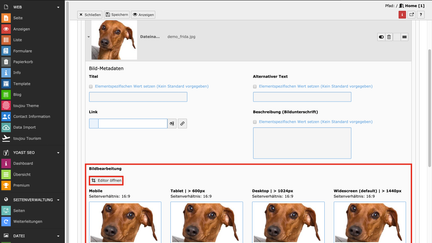 - Der Bildausschnitt kann unter Editor öffnen angepasst werden