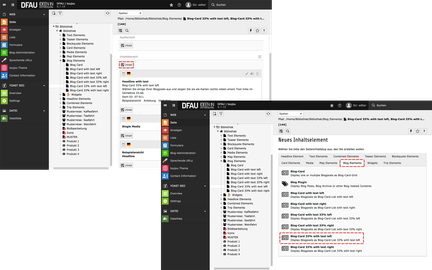 Neue Gruppen, umgezogene Elemente in andere Gruppen und eine verbesserte Element-Vorschau. Die Neuerungen im toujou-Backend.