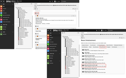Neue Gruppen, umgezogene Elemente in andere Gruppen und eine verbesserte Element-Vorschau. Die Neuerungen im toujou-Backend.