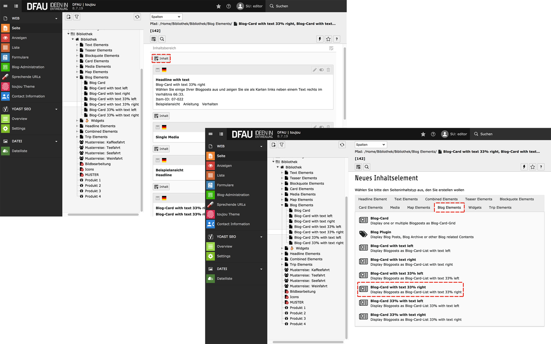 Erläuterungen aus dem toujou- & TYPO3-Setup, die mit dieser Elementanleitung in Verbindung stehen.
