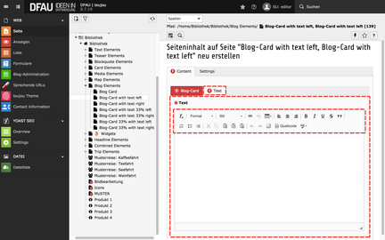 - Geben Sie bei Content im untergeordneten Reiter Text Ihren Text in den Editor ein.