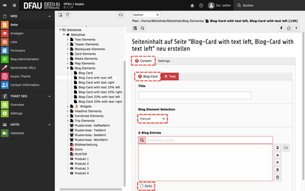- Im Reiter Blog Elements wählen Sie Blog-Card with text left.