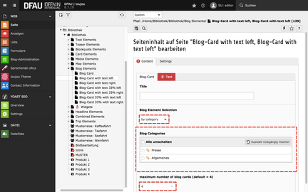 - Bestimmen Sie im Feld maximum number of blog cards (default = 4), wie viele Artikel innerhalb dieses Elements dargestellt werden sollen