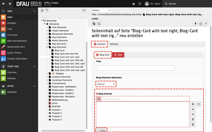 - Im Reiter Blog Elements wählen Sie Blog-Card with text right.