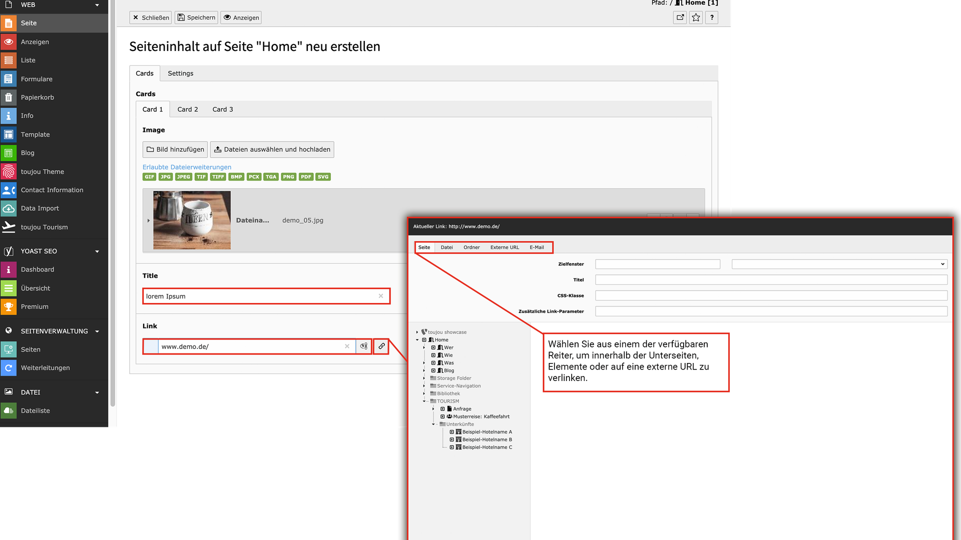 - Klicken Sie auf den Button Inhalt, um eine Imagecard zu erstellen.