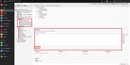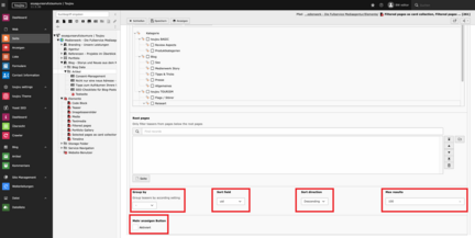- Sortierungsreihenfolge: Definieren Sie eine Sortierungsreihenfolge. Wählen Sie im Drop-Down-Menü bei Sort field zwischen Veröffentlichundsdatum, Seiten-ID (nummerisch) oder Seitentitel (alphabetisch)