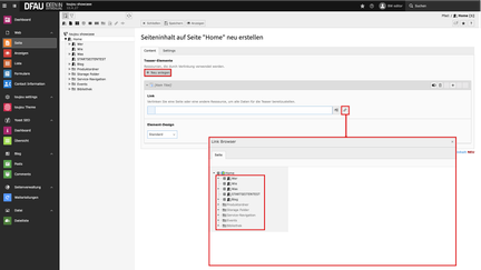 - Klicken Sie auf das Kettensymbol rechts neben dem Linkfeld, um aus der Seitenübersicht die gewünschte Seite zu wählen.