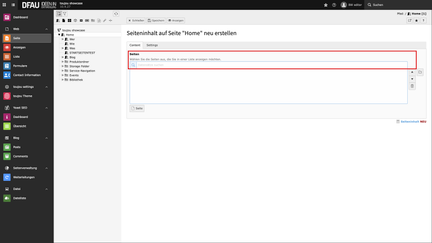 - Suchen Sie hierfür die gewünschte Seite, indem Sie in das Suchfeld den Seitentitel eingeben und auf die Seite klicken. Diese erscheint anschließend im Feld darunter.