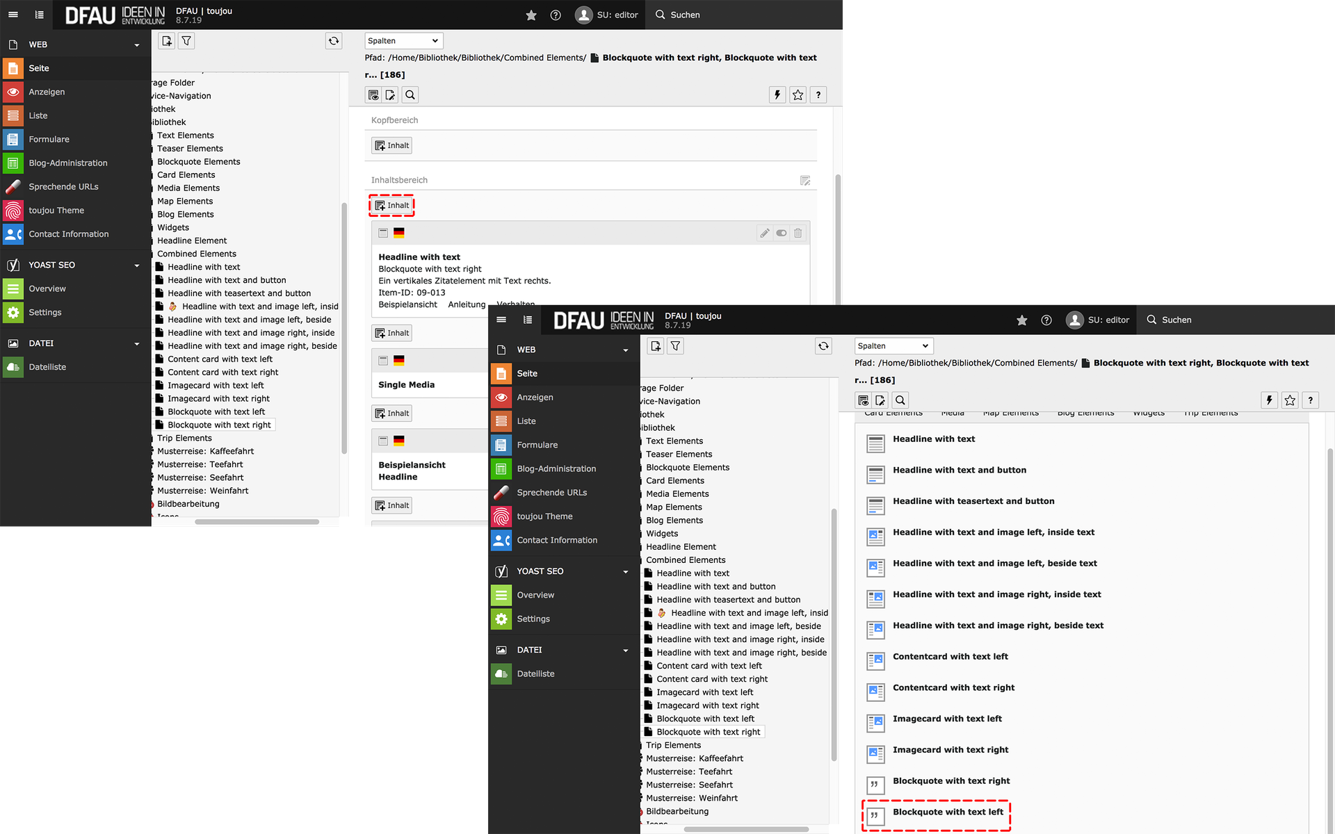 - Im Reiter Combined Elements wählen Sie Blockquote with text right.