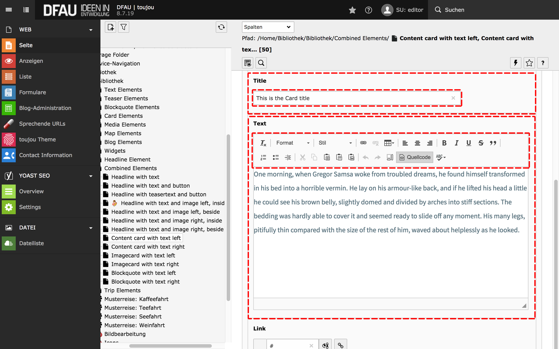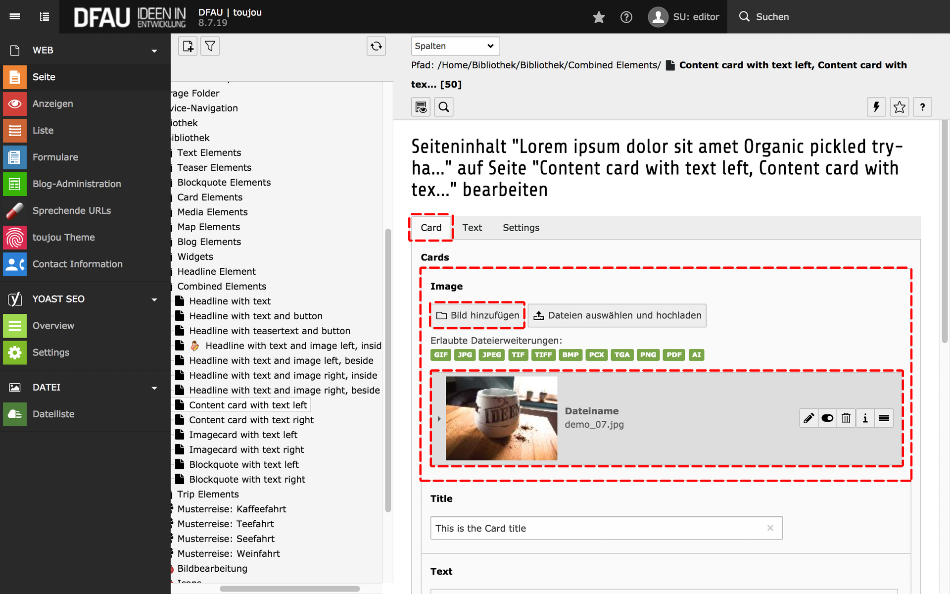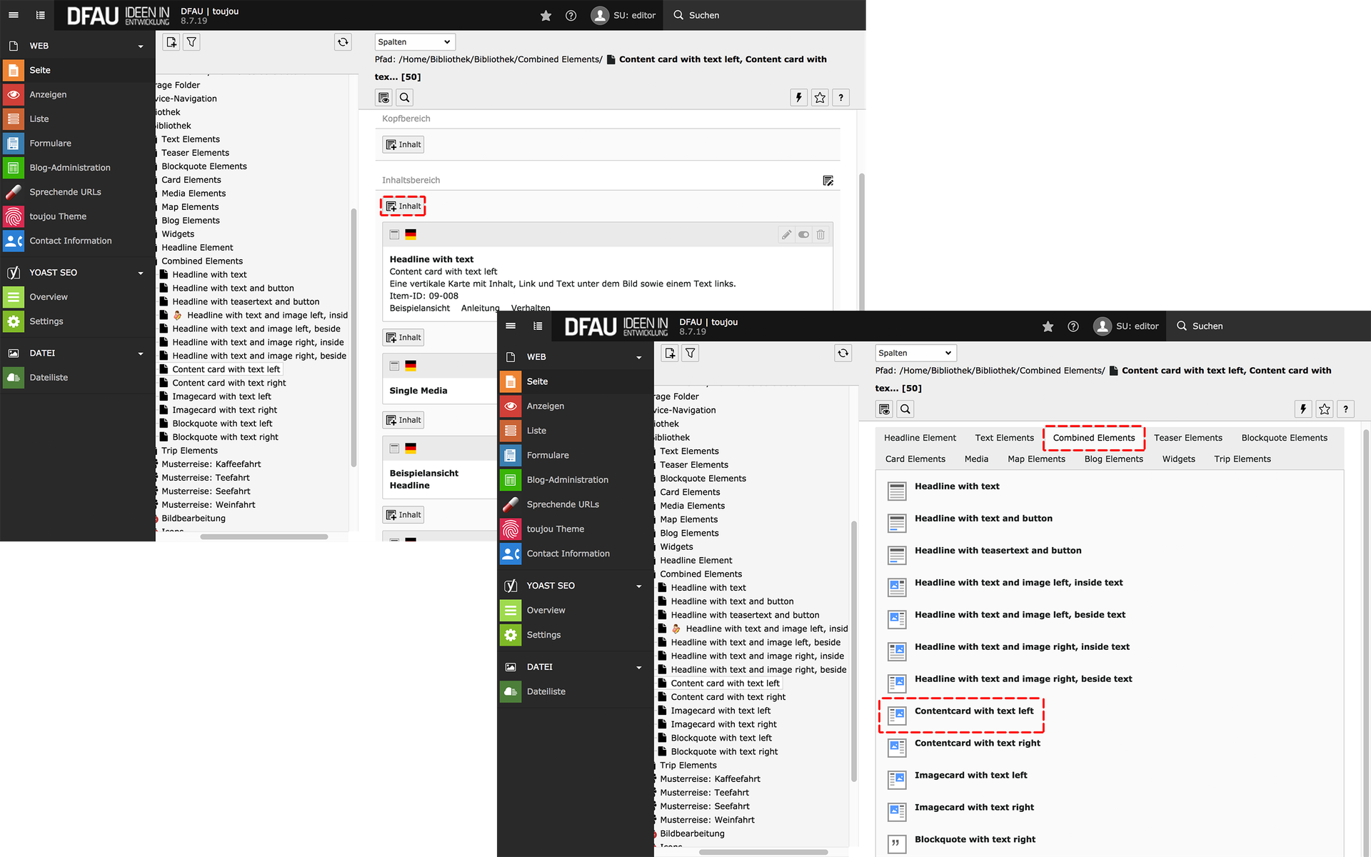 - Im Reiter Combined Elements wählen Sie Content card with text left.