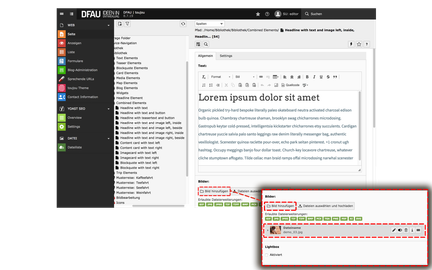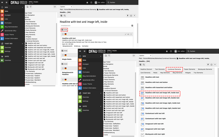 - Im Reiter Combined Elements wählen Sie Headline with text and media left, inside text.