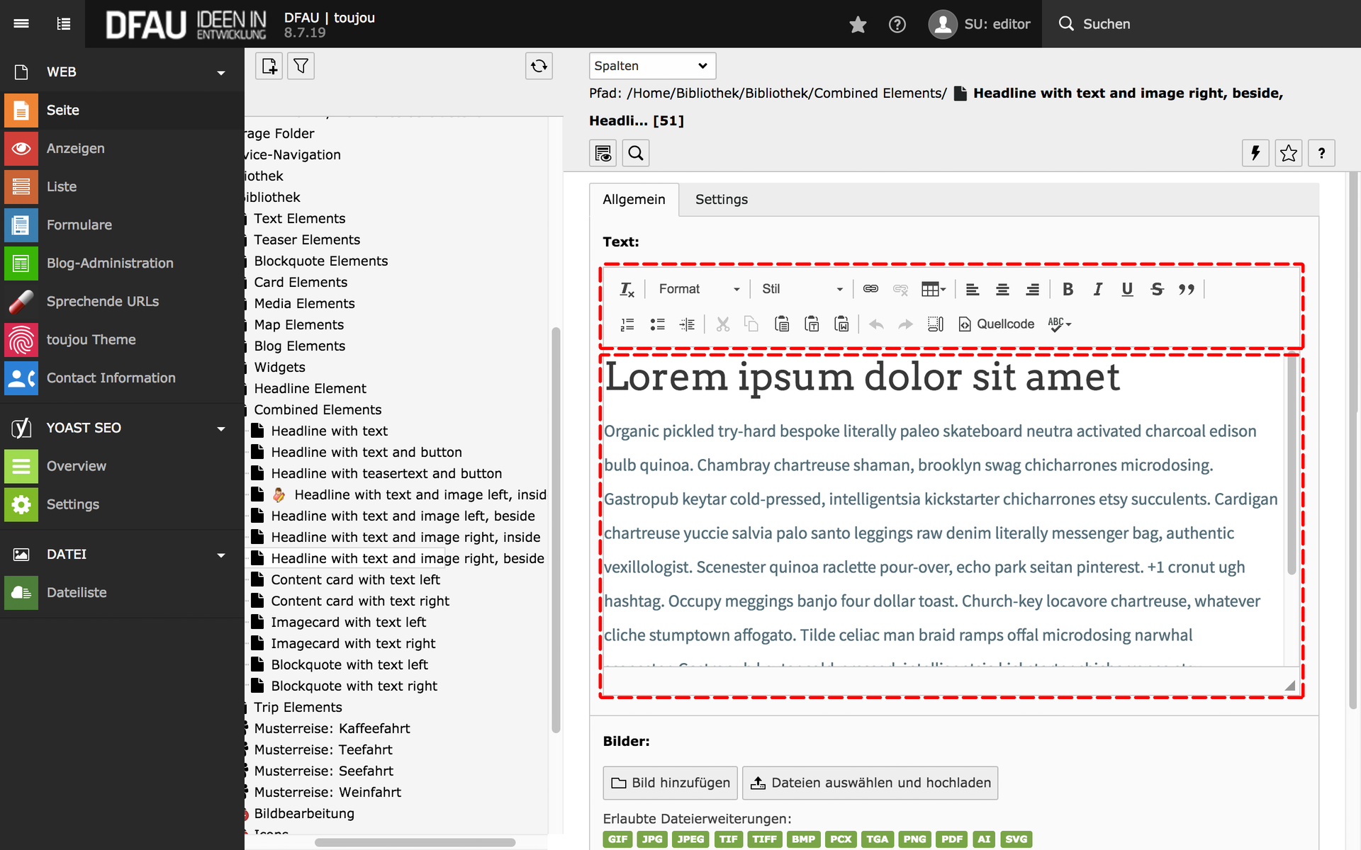 Erläuterungen aus dem toujou- & TYPO3-Setup, die mit dieser Elementanleitung in Verbindung stehen.