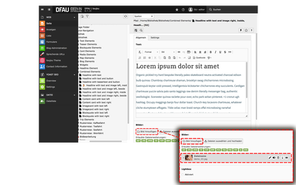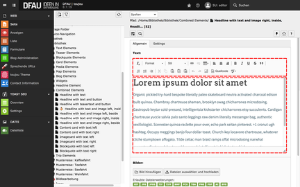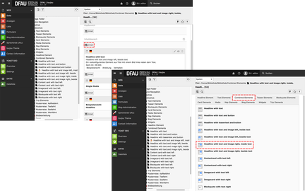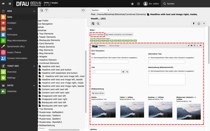 - Im Reiter Combined Elements wählen Sie Headline with text and media right, inside text.