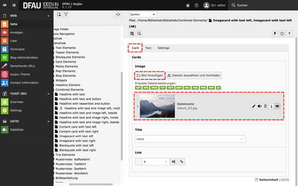- Im Reiter Combined Elements wählen Sie Imagecard with text left.
