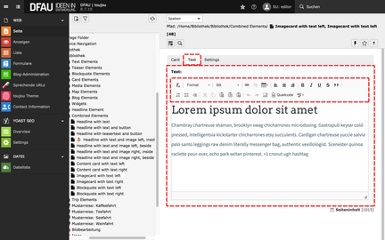 - Geben Sie im Reiter Text Ihren Text in den Editor ein.