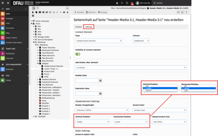 - Im Reiter Settings können Sie über die Vertical und Horizontal Position die Platzierung Ihrer Überschrift bestimmen.