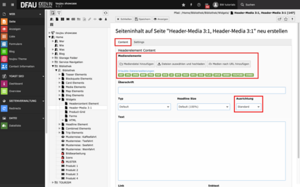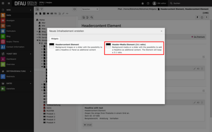 - Wählen Sie unter dem Reiter Widgets das Element Header Media Element (3:1 ratio) aus.