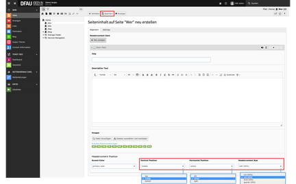 - Headercontent Position: Bestimmen Sie über die Vertical und Horizontal Position und Size die Platzierung und Größe Ihres Headercontents.