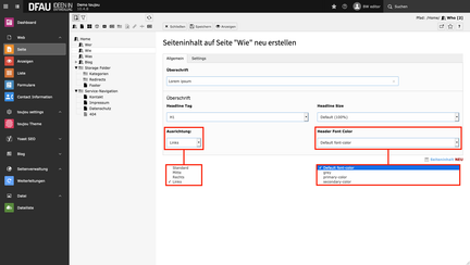 - Wählen Sie im Menü Header Font Color zwischen den alternativen Farbvergaben.