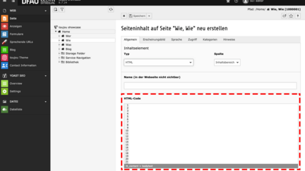- Im Feld HTML-Code schreiben Sie direkt HTML oder fügen einen externen Code ein.