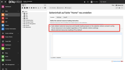 - Für das Anzeigen der externen Inhalte gemäß den Einstellungen des Website-Benutzers wählen Sie die oberste Option (empfohlen), für das Anzeigen der Inhalte unabhängig der Besucher-Einstellungen die mittlere Option und für das standardmäßige Blockieren aller externen Inhalte die untere Option.
