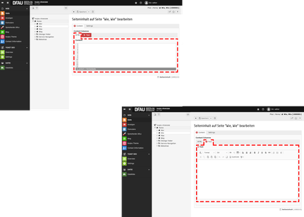 - Im Reiter Content schreiben Sie im untergeordneten Reiter HTML direkt HTML oder fügen einen externen Code ein.