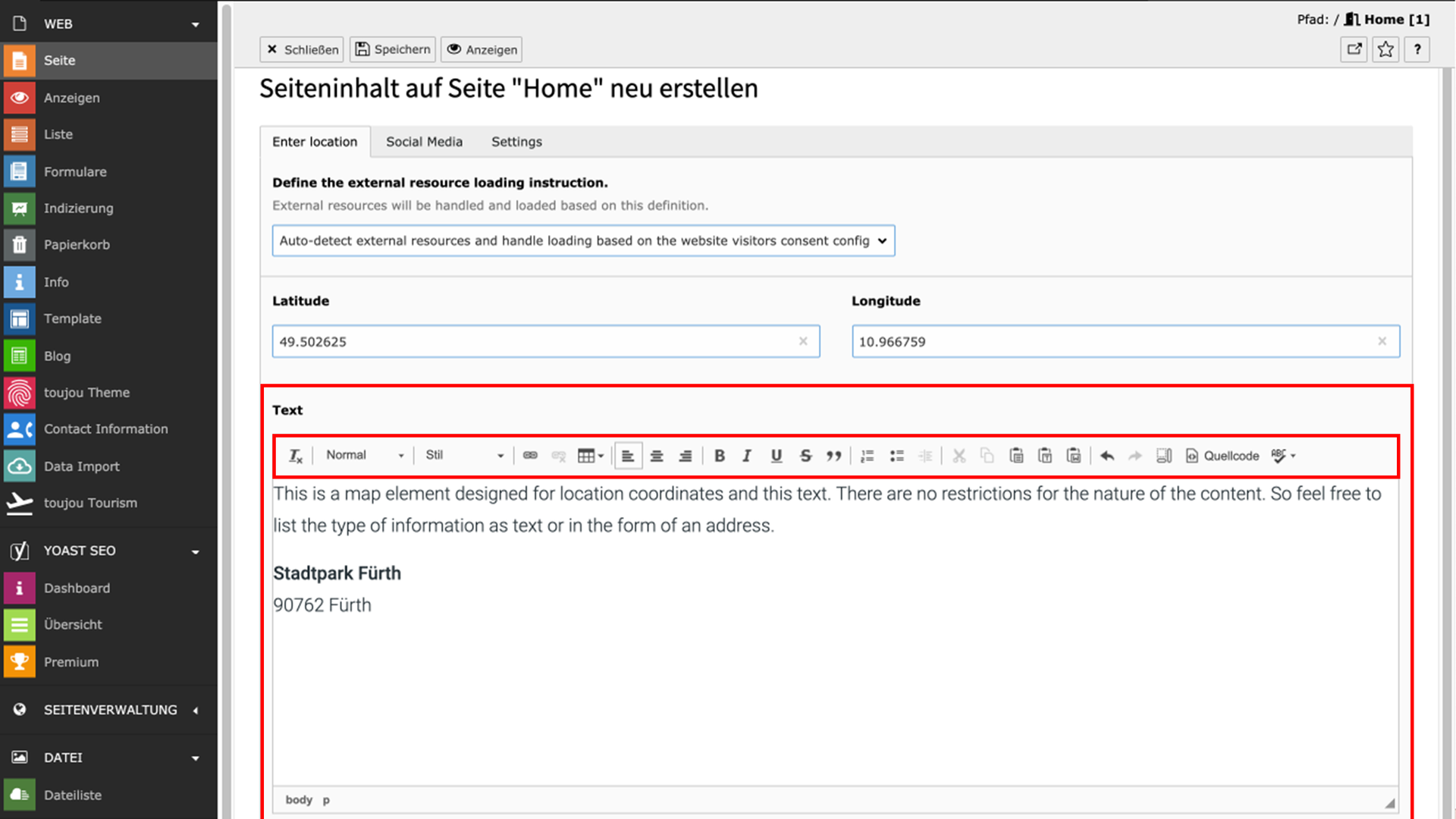 Erläuterungen aus dem toujou- & TYPO3-Setup, die mit dieser Elementanleitung in Verbindung stehen.