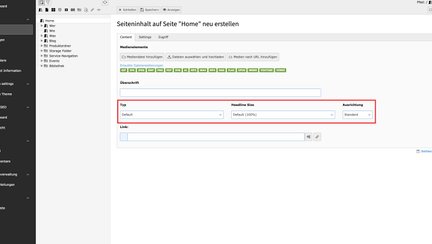 - Unter Type können Sie für die Headline zwischen H1 bis H5 wählen.