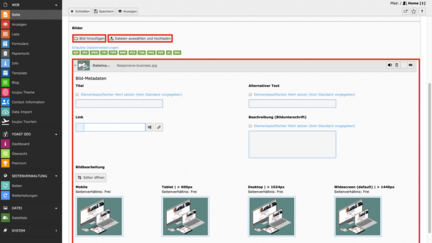 - Damit wählen Sie eine Datei aus Ihrer Fileliste aus, laden eine Datei in den entsprechenden Ordner hoch oder fügen eine Video-URL ein.