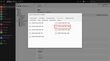 - Im Reiter Teaser Elements wählen Sie Cinema-Teaser 66%, right.