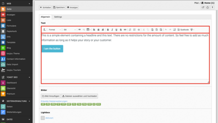 - Klicken Sie auf den Button + Inhalt, um einen Teaser-Element zu erstellen.