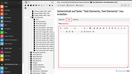 - Um einen Textblock mit Titel und ggf. Untertitel anzulegen, klicken Sie im Reiter Allgemein auf Neu anlegen.