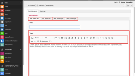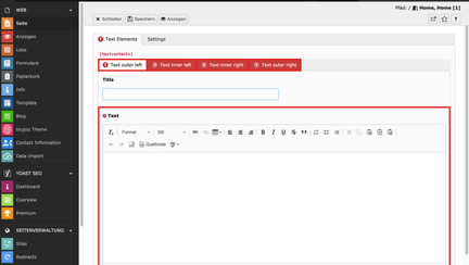 - Klicken Sie auf den Button Inhalt, um einen Textblock zu erstellen.