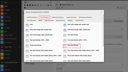 - Im Reiter Text Elements wählen Sie Four text blocks.