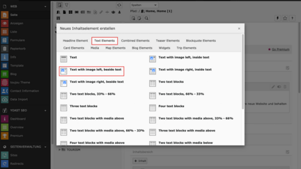 - Im Reiter Text Elements wählen Sie Text with media left, beside text.