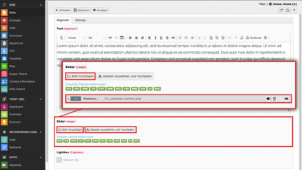 - Wählen Sie eine Bilddatei aus Ihrer Fileliste aus oder laden Sie eine Datei in den entsprechenden Ordner (Datei auswählen und hochladen) hoch.